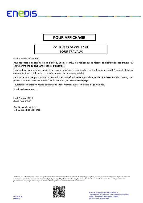 Votre mairie / Actualités / Coupure de courant pour travaux ENEDIS