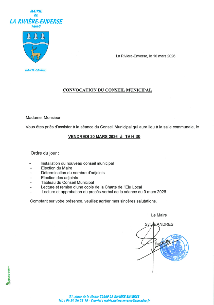 Prochain Conseil Municipal 17/03/2026 Le prochain conseil municipal qui aura notamment pour objet l'installation du Maire et des adjoints aura lieu le Vendredi 20 Mars à 19h30 à la salle communale.