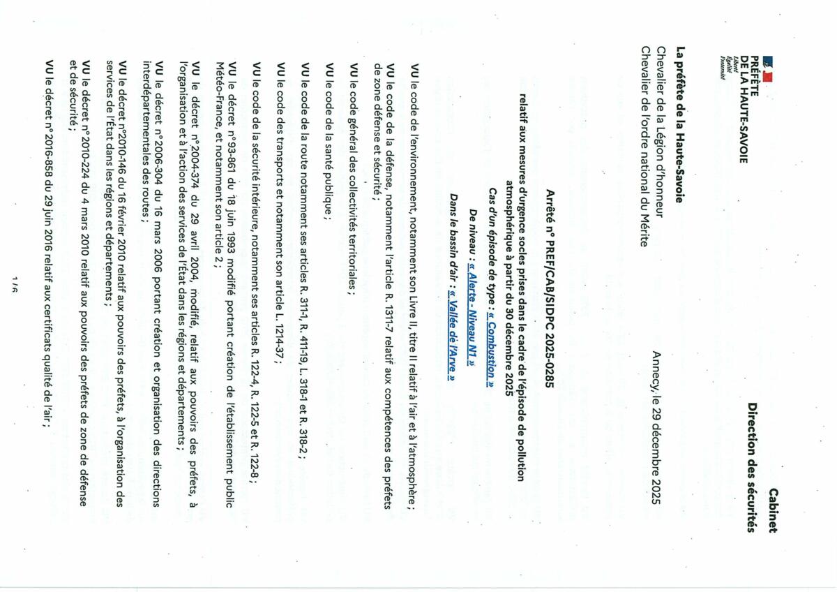 Arrêté prefectoral : pollution atmosphérique du 30/12/25 29/12/2025 Arrêté préfectoral en vigueur au 30 décembre 2025