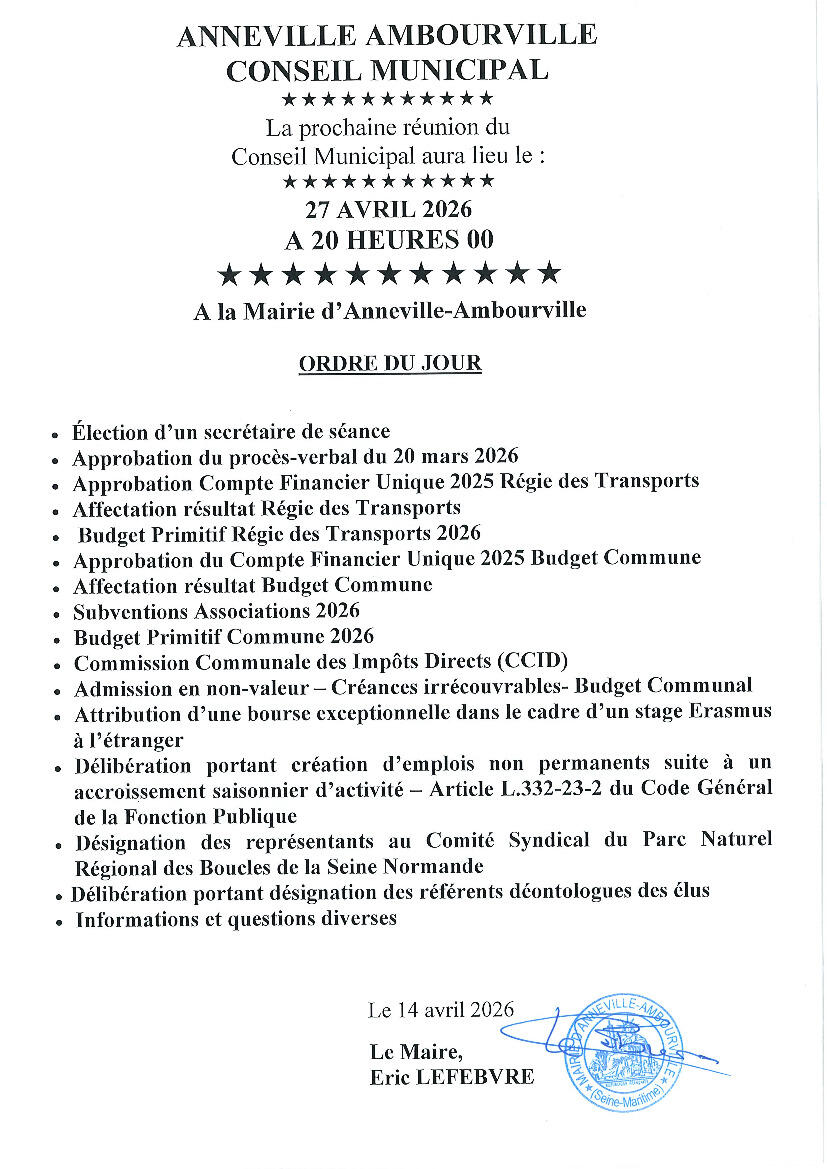 Conseil Municipal du 27 avril 2026 :
