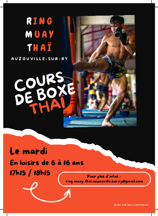 cours de boxe Thaï à la salle polyvalente le mardi soir de 17 h 15 à 18 h 15 pour les jeunes de 6 à 16 ans