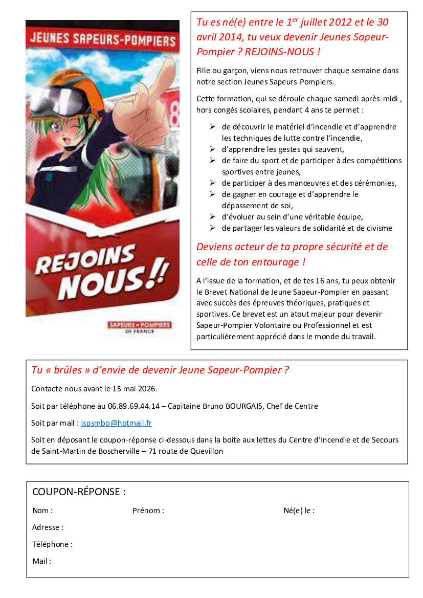 🚒 Recrutement Jeunes Sapeurs-Pompiers (JSP)