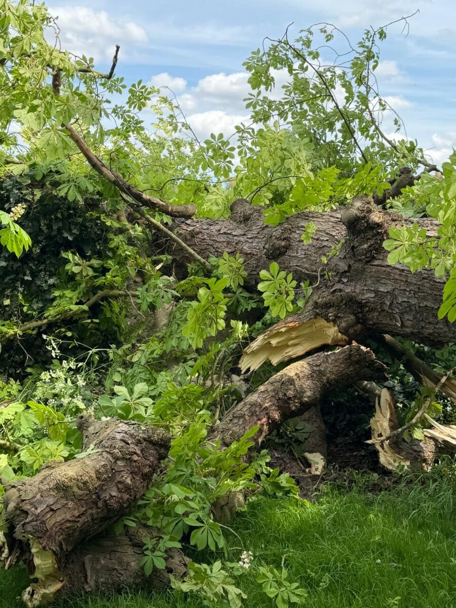 Un énorme marronnier vient de chuter sur la départementale (en face de Villers).