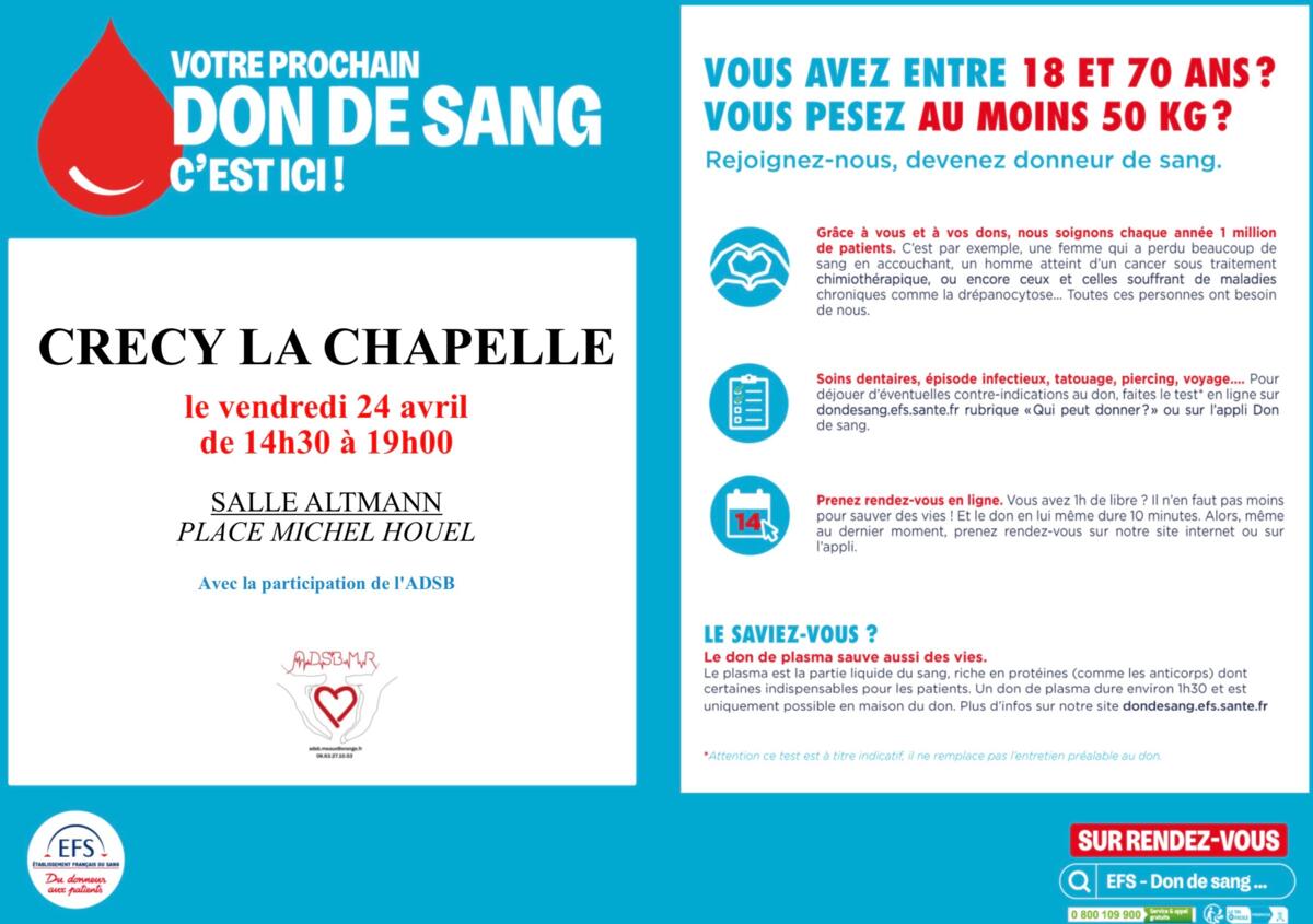 Don du sang vendredi 24 avril 2026