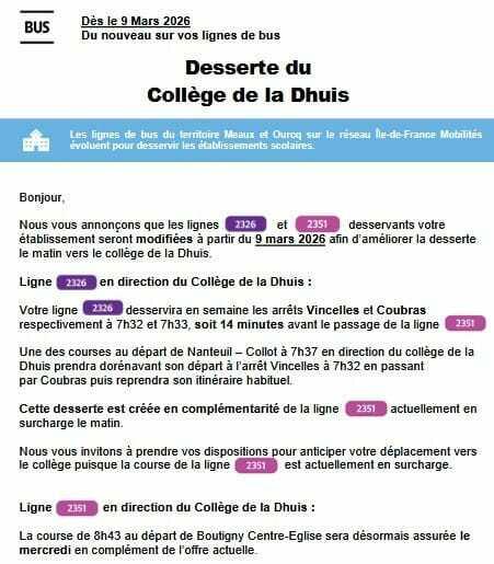 Desserte du collège de la Dhuis
