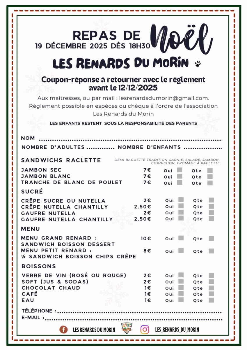 Votre mairie / Agenda / Repas de Noël association les renards du Morin