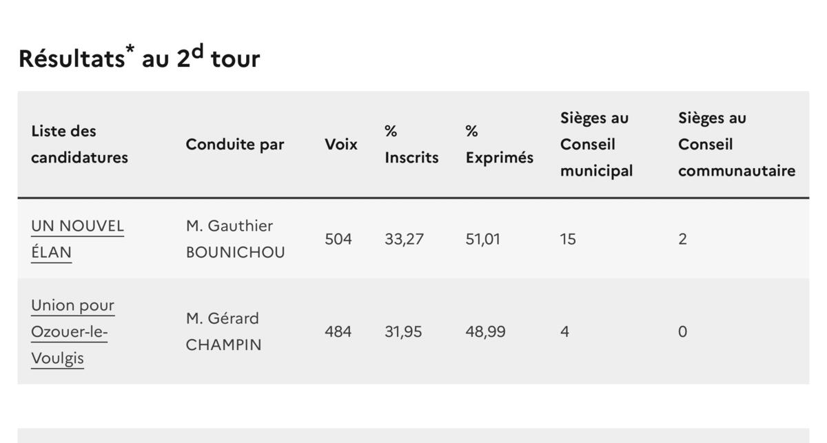✅ Liste « Union pour Ozouer-le-Voulgis » menée par M. Gérard CHAMPIN :