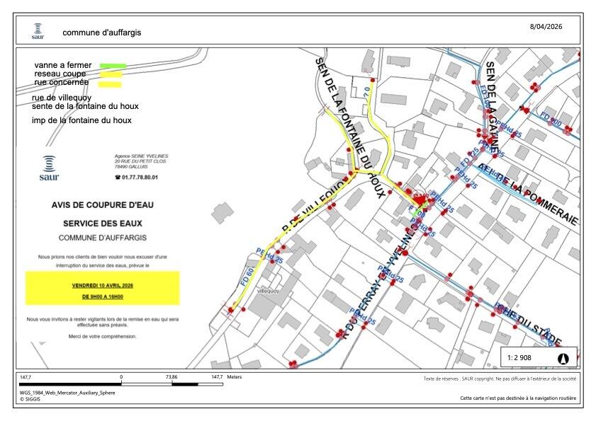 Info SAUR : Coupure d’eau potable vendredi 10 avril 2026