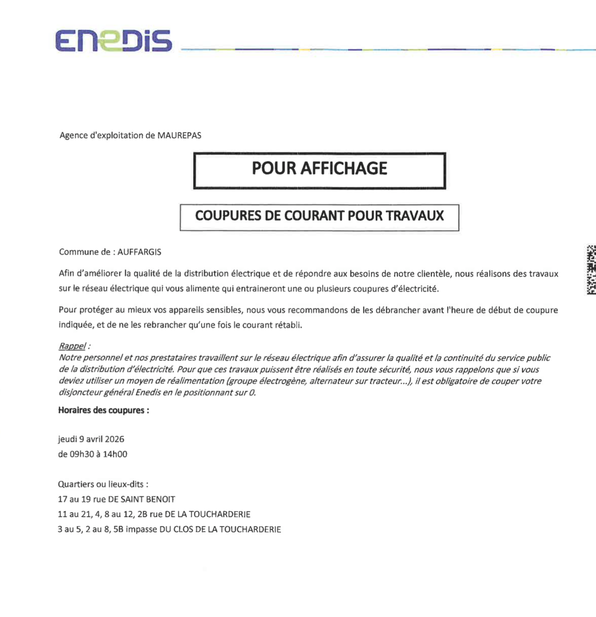 Info Enédis : coupure d'électricité jeudi 9 avril