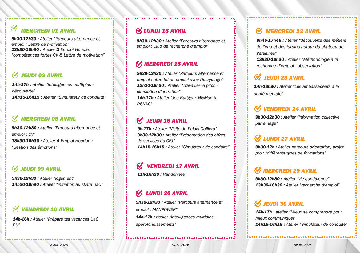 Mission Locale Intercommunale de Rambouillet 01/04/2026 Vous trouverez ci-joint le programme d'avril de la Mission Locale Intercommunale de Rambouillet
