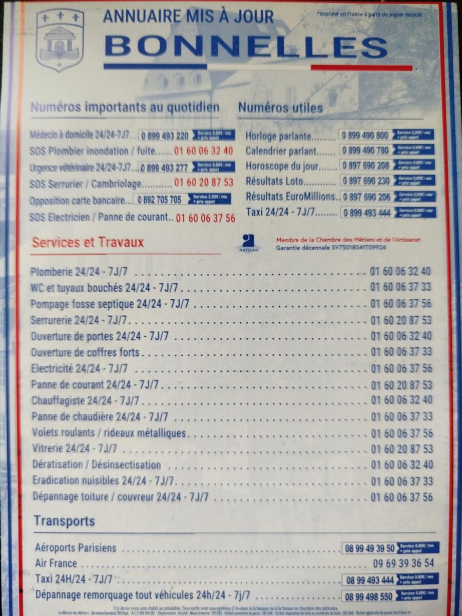 Vous allez ou avez reçu dans vos boîtes aux lettres une publicité intitulée "Annuaire mis a jour BONNELLES".