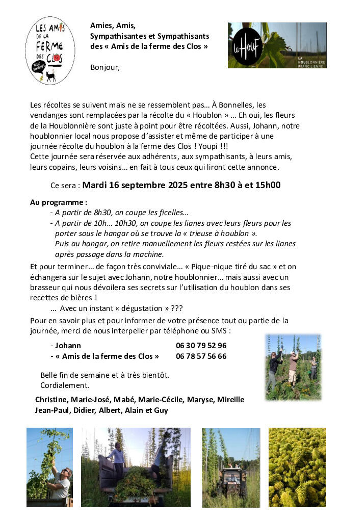Votre mairie / Actualités / Récolte du Houblon à la Ferme des Clos