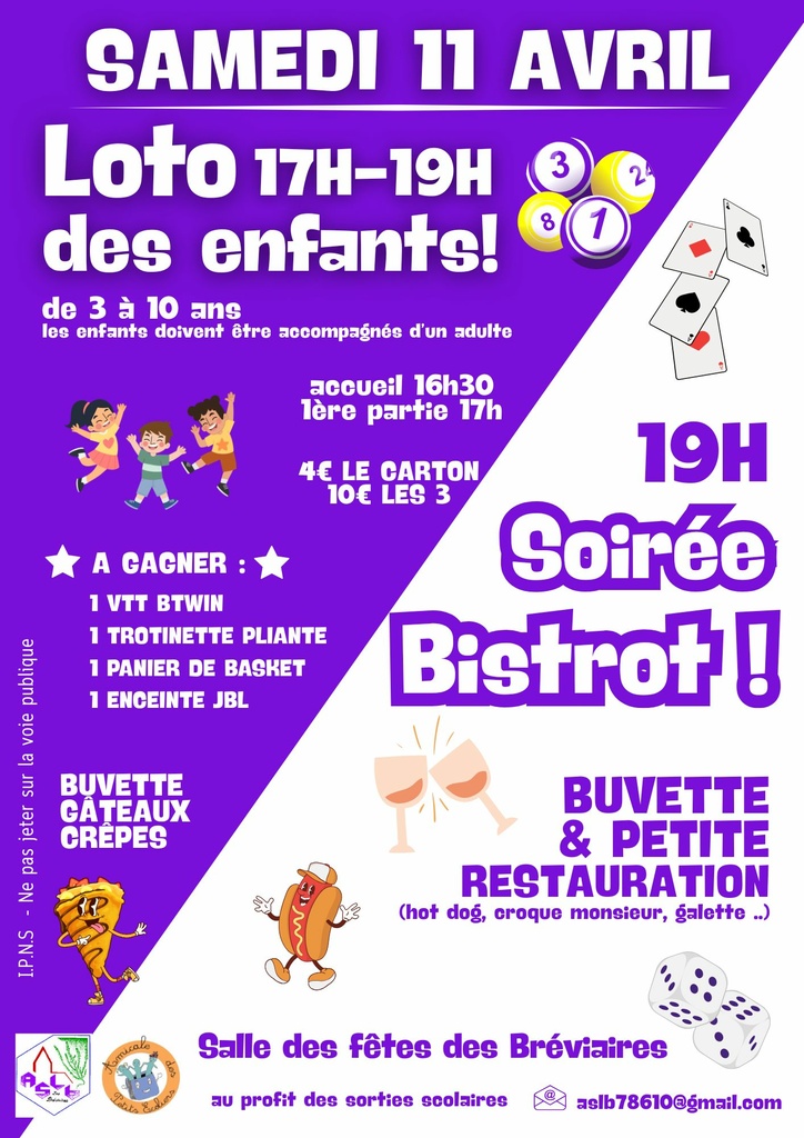 [ANIMATION] LOTO ENFANTS / SOIREE BISTROT Samedi 11 Avril