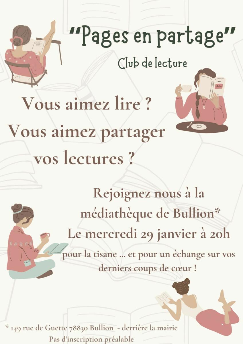 Club de lecture 25/01/2025 Mercredi 29 janvier 20h à la médiathèque club de lecture "Pages en partage" ouvert à tous pour échanger sur vos dernières lectures