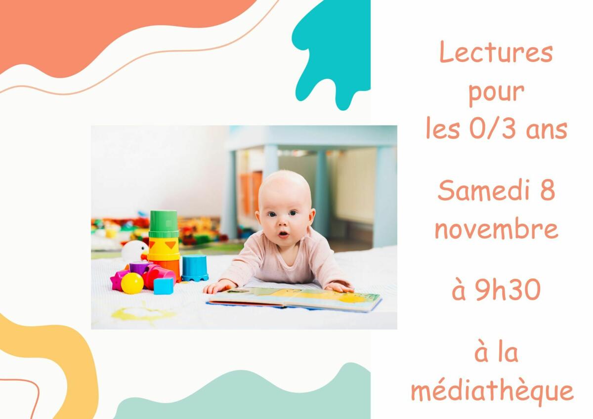 Scéance bébés lecteurs 04/11/2025 Ce samedi 8 novembre à 9h30 à la médiathèque : séance bébés lecteurs pour les 0/3 ans. Pas d'inscription préalable.