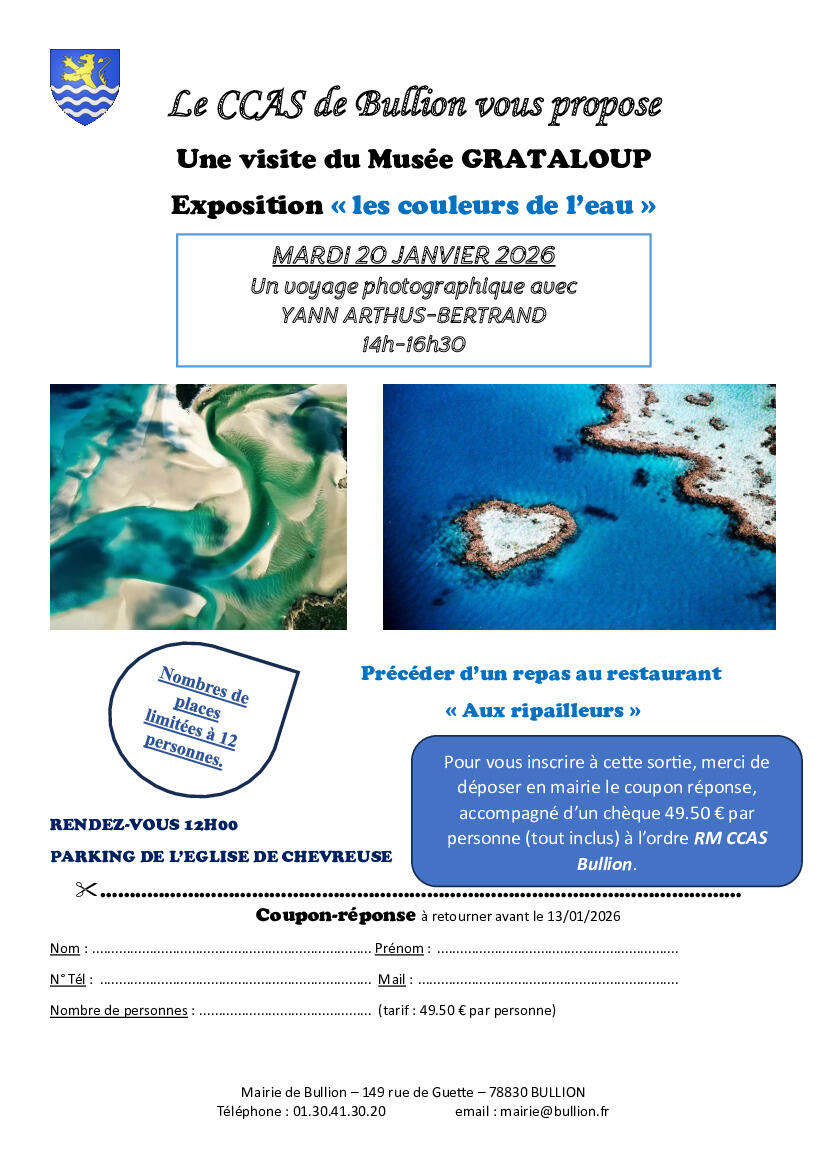 Le CCAS de Bullion a le plaisir de vous proposer une visite du musée Grataloup de Chevreuse le Mardi 20 janvier 2026.