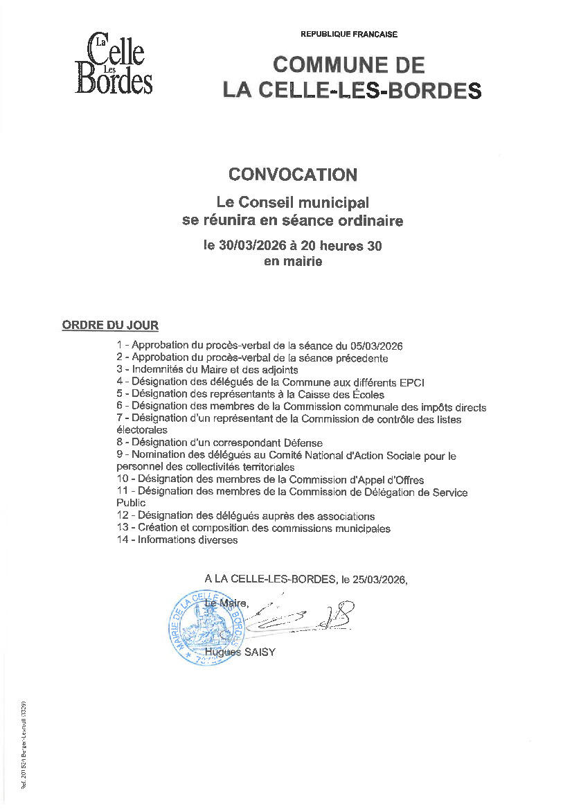 Toute l'actualité de Mairie de La Celle-les-Bordes