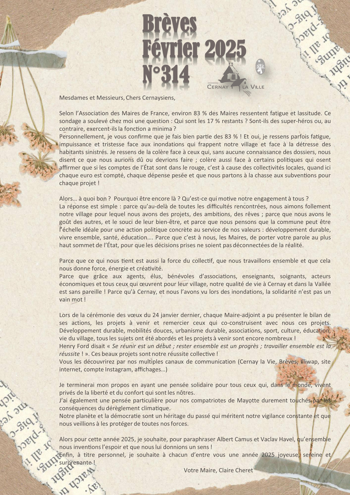 [Brèves de Février] L'actualité de Cernay 07/02/2025 L'édition de Février est disponible en cliquant sur l'image Bonne lecture,