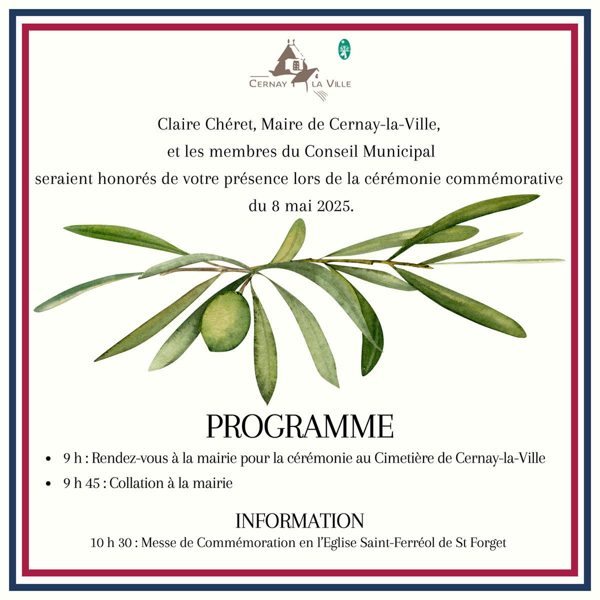 seraient honorés de votre présence lors de la cérémonie commémorative du 8 mai.