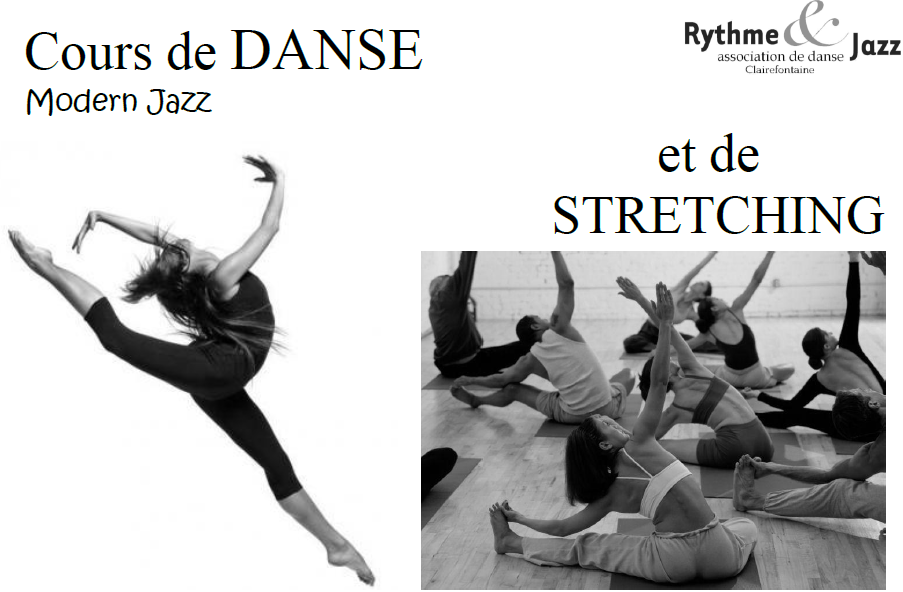 Cours de danse et de stretching L'association "Rythme et Jazz" de Clairefontaine en Yvelines, créée en novembre 1987,vous accueille dans la salle "André Moutier" de Clairefontaine, et vous propose: des cours de Modern'Jazz pour enfants à partir de 4 ans, adolescents et adultes, des cours de stretching pour adultes, le spectacle de fin d'année, Une animation-spectacle dans le courant de l'année.