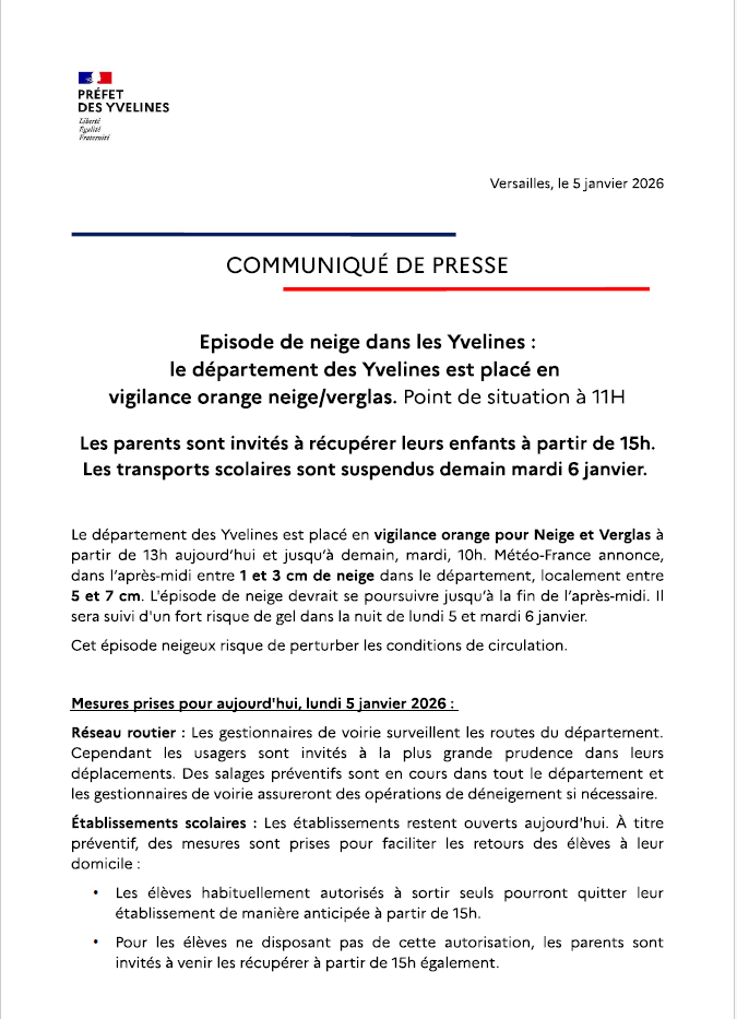 Suivez l’évolution de la situation sur le site de la préfecture des Yvelines et sur
