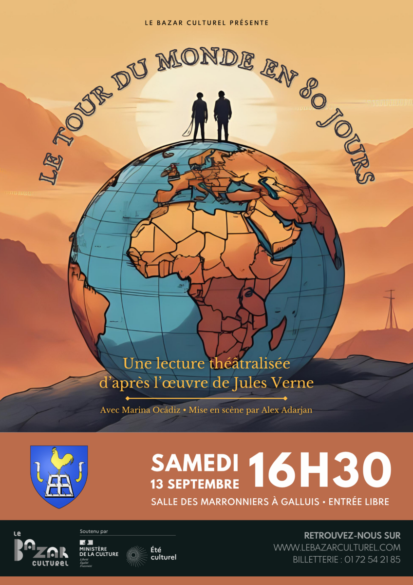 Rendez-vous les 13 septembre 2025 à partir de 16h30 dans la salle des Marronniers pour une lecture théâtralisée d'après l'œuvre de Jules Verne : "Le tour du monde en 80 jours" 🌍.