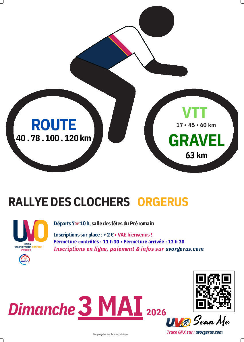 Comme chaque année, l’UV ORGERUS organise l’évènement majeur de leur association sportive, Le Rallye des clochers, édition 2026.