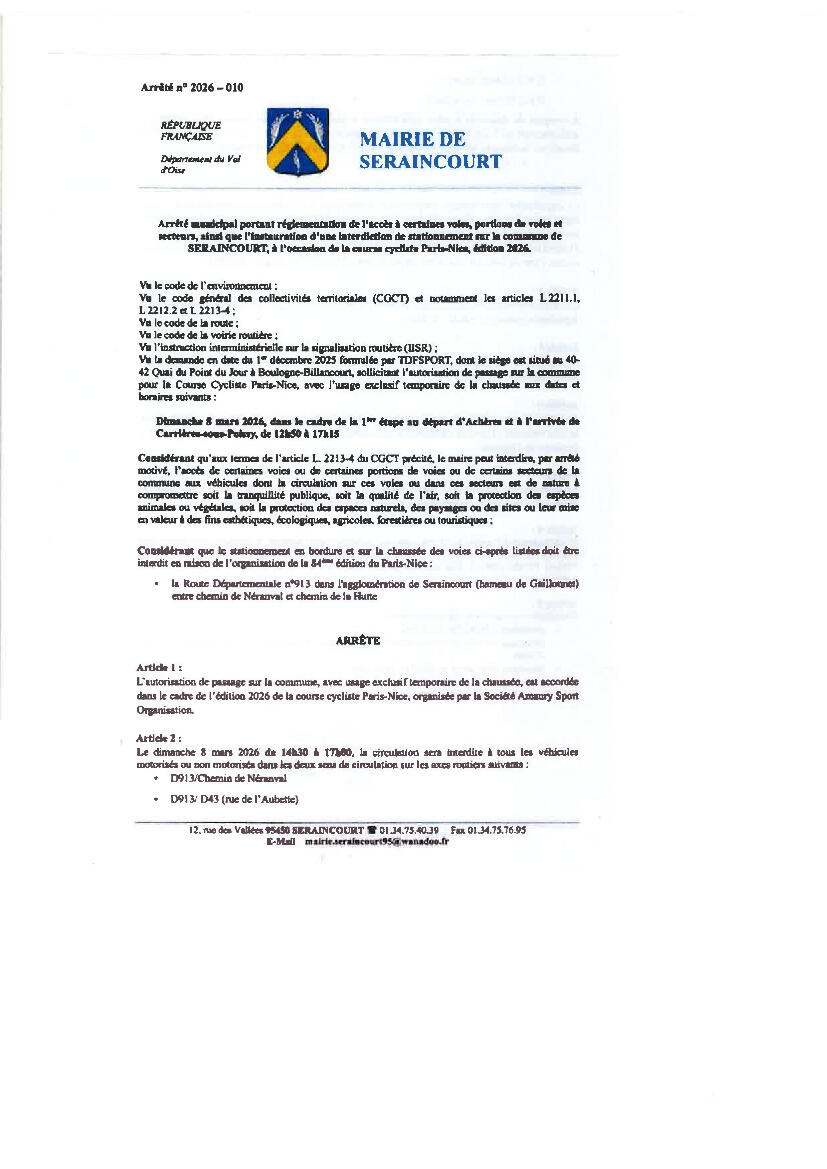 ARRETE DE CIRCULATION Chemin de la mare aux pois