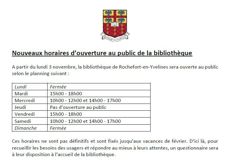 Nouveaux horaires d’ouverture au public de la bibliothèque