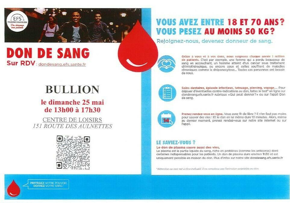 Votre mairie / Actualités / Don du Sang - BULLION - 25 mai