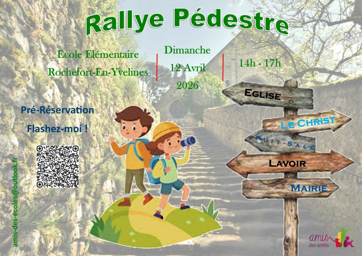 ************************************************************************************ L’association Les Amis des Écoles organise un événement inédit pour les petits (et les grands) explorateurs ! 📍Où ? Dans les rues de notre beau village de Rochefort-en-Yvelines pour cette 1ère édition. 🗓️ Quand ? Dimanche 12 avril 2026 🕒Horaires : Départ libre entre 14h et 17h. 🎒Au programme : Jeux, énigmes et un peu d'histoire... De quoi devenir incollable sur Rochefort tout en s'amusant ! 💶Tarif : 5€ par enfant (goûter inclus ! 🍪). Gratuit pour les accompagnateurs. 🍰 Un stand boissons & gourmandises vous attendra à l'arrivée pour reprendre des forces. 🏁Rendez-vous : Départ et remise de la fiche de route à l’école élémentaire de Rochefort-En-Yvelines 👉 Inscription obligatoire via HelloAsso : Rallye Pédestre.