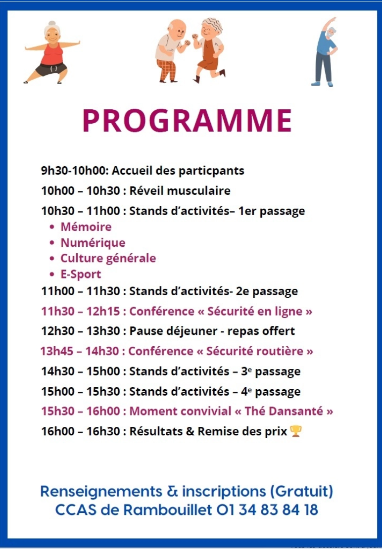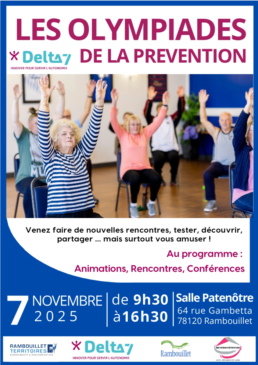 Les 0lympiades de Ia Prévention auront lieu vendredi 7 novembre 2025 de 9h30 à 16h30, à la salle Patenôtre de Rambouillet. Cette journée s’adresse à I’ensemble des habitants seniors des communes du territoire de la CART. Elle a pour ambition d'allier convivialité, échanges et sensibilisation autour du « Bien Vieillir », à travers des activités variées et adaptées.