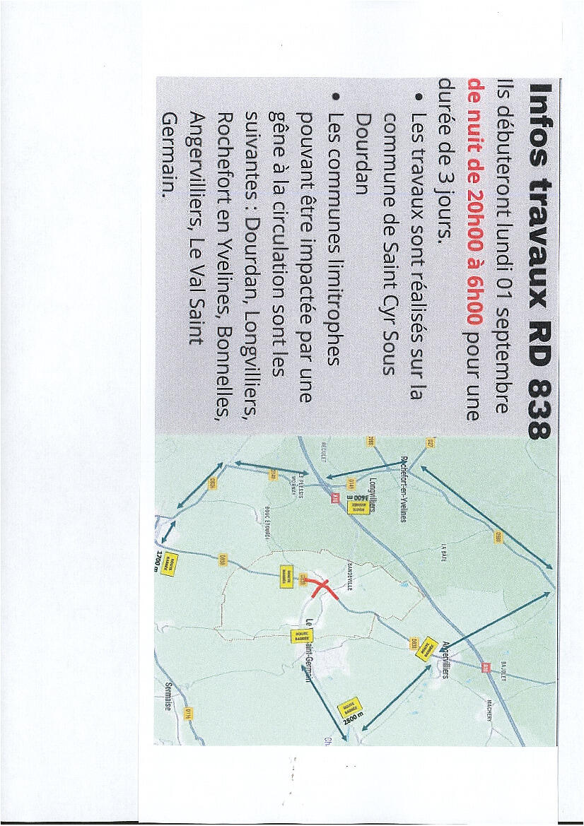 Votre mairie / Actualités / Travaux sur la RD 838 Saint Cyr sous Dourdan