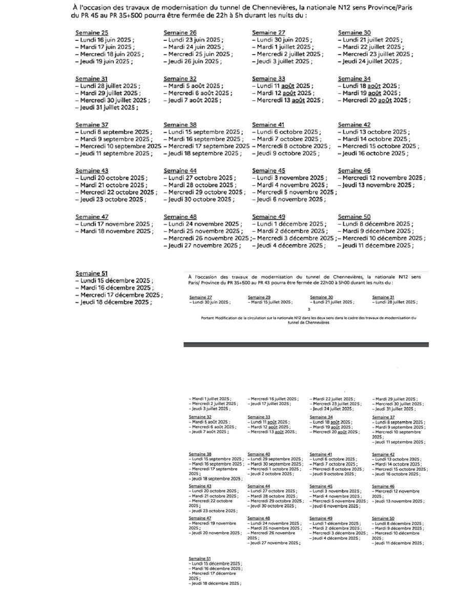 Votre mairie / Actualités / Fermeture N12 - Travaux tunnel de Chennevières. -