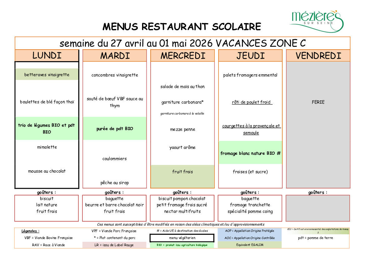 Retrouvez les menus des prochains mois jusqu'à début juillet ci-dessous. 😋