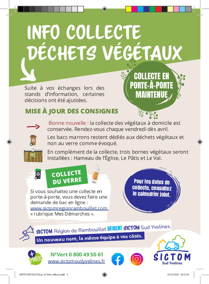 Une communication du SICTOM a été distribuée dans vos boites aux lettres. Elle vous annonçait la collecte des déchets végétaux en porte à porte.