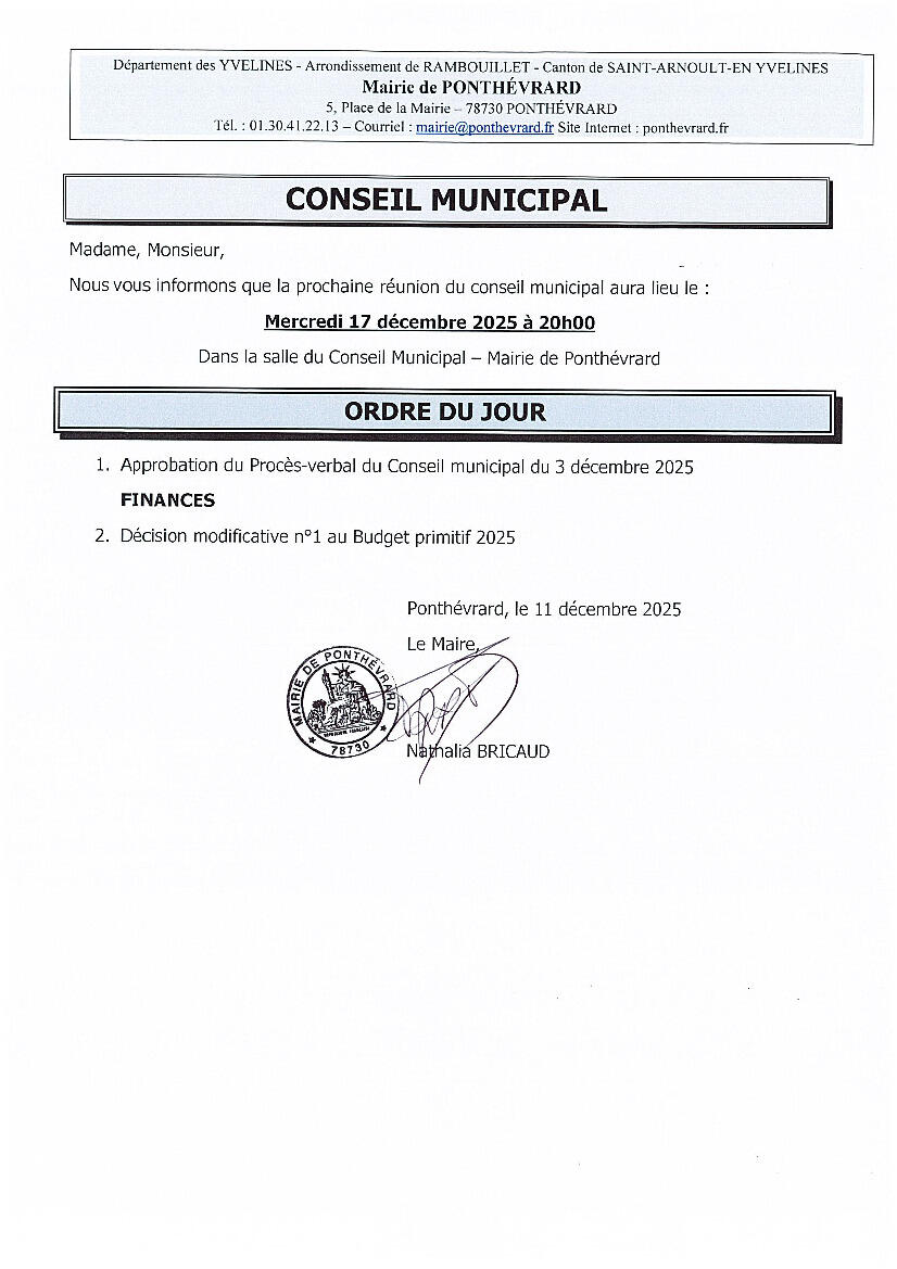 Conseil municipal mercredi 17 décembre 2025