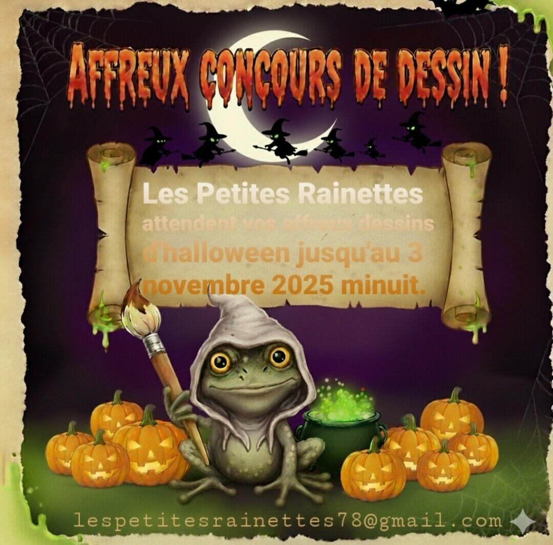 🎃 Les Petites Rainettes lancent leur troisième concours de dessin d halloween, nous attendons vos créations à partir de maintenant jusqu'au 3 novembre minuit. 🎃