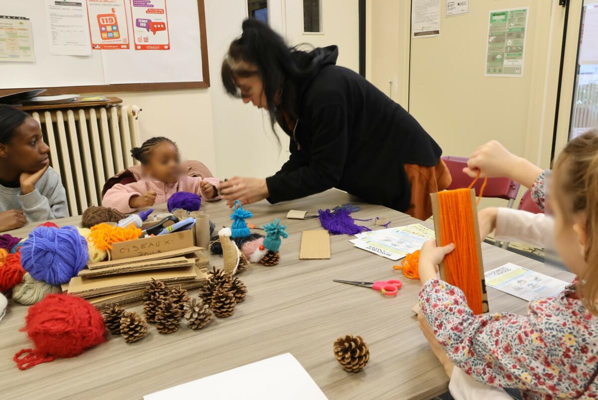 La Ressourcerie offre un atelier de création dans le hall d'entrée de l'école maternelle du Jeu de Paume.