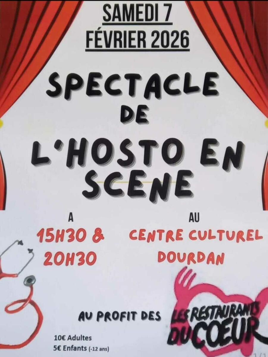 Spectacle au profit des restos du cœur 26/01/2026 Samedi 7 février 2026 à 15h30 et 20h30 au centre culturel de Dourdan.