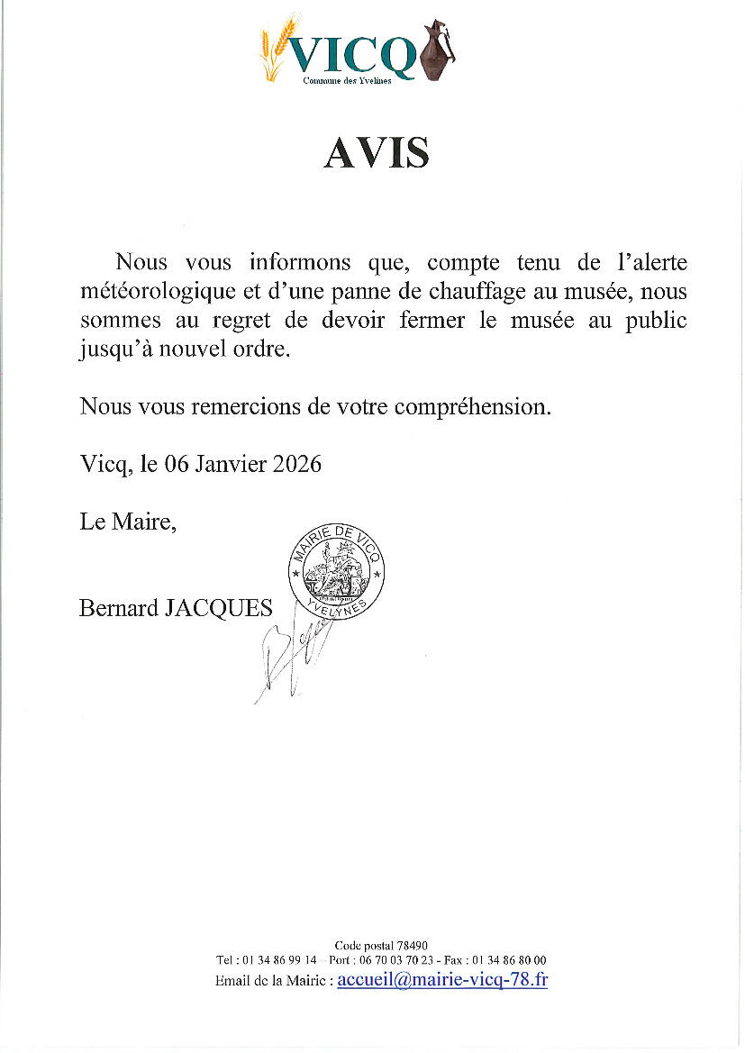 Grand froid - fermeture exceptionnelle du Musée de Vicq