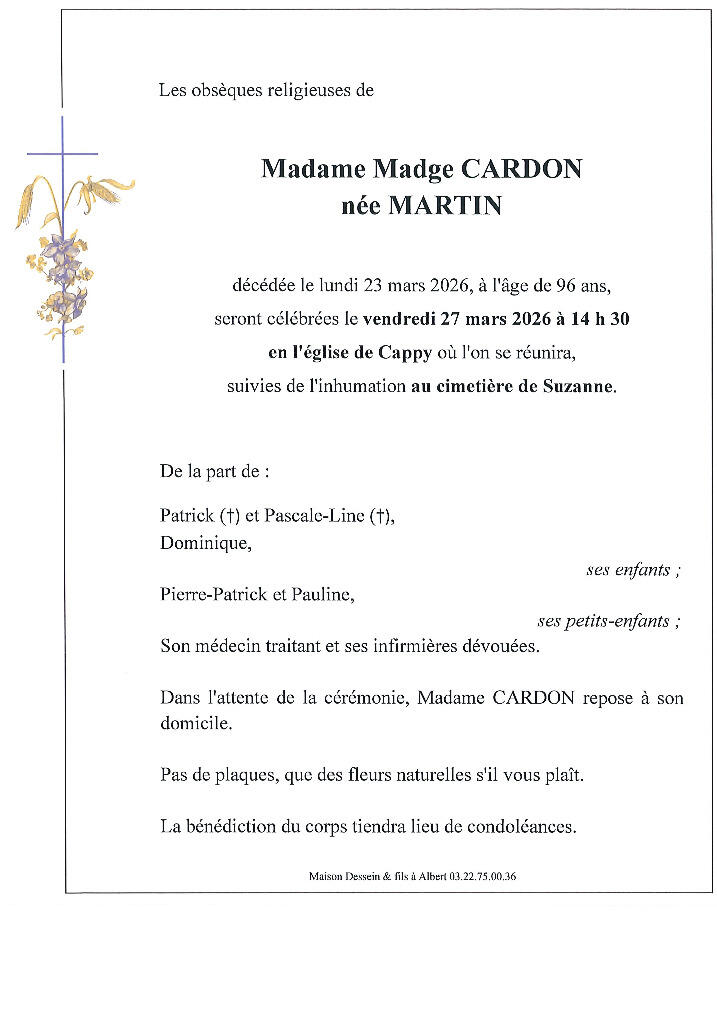 Décès Madge CARDON