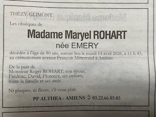Décès de Madame ROHART
