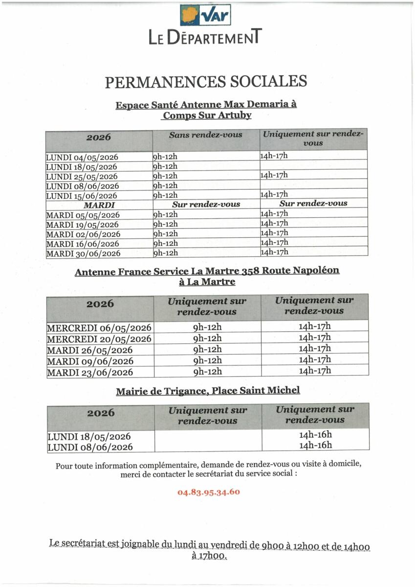 Votre mairie / Actualités / PERMANENCES SOCIALES MAI ET JUIN 2026