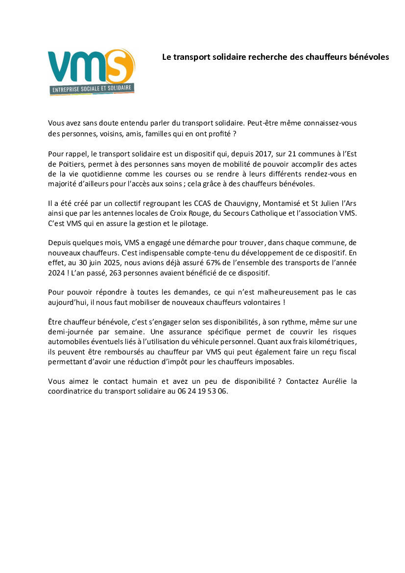 VMS - Transport solidaire - recherche de bénévoles