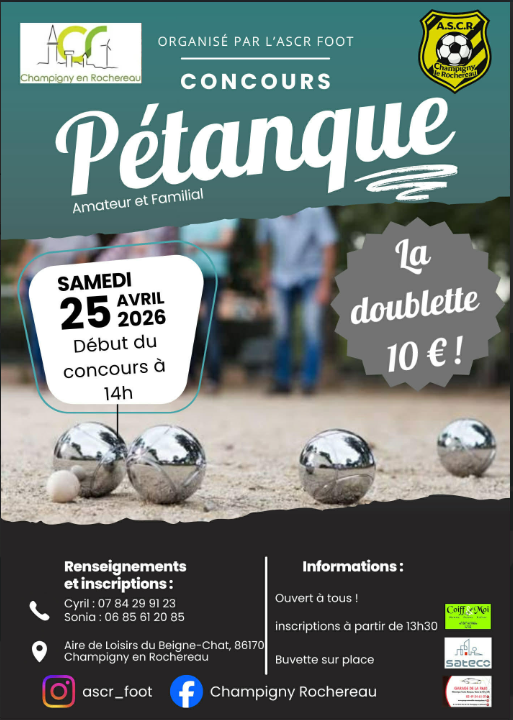ERRATUM affiche PETANQUE du FOOT 20/03/2026 Erratum sur affiche du Concours de Pétanque du Club de FOOT, voici la bonne affiche