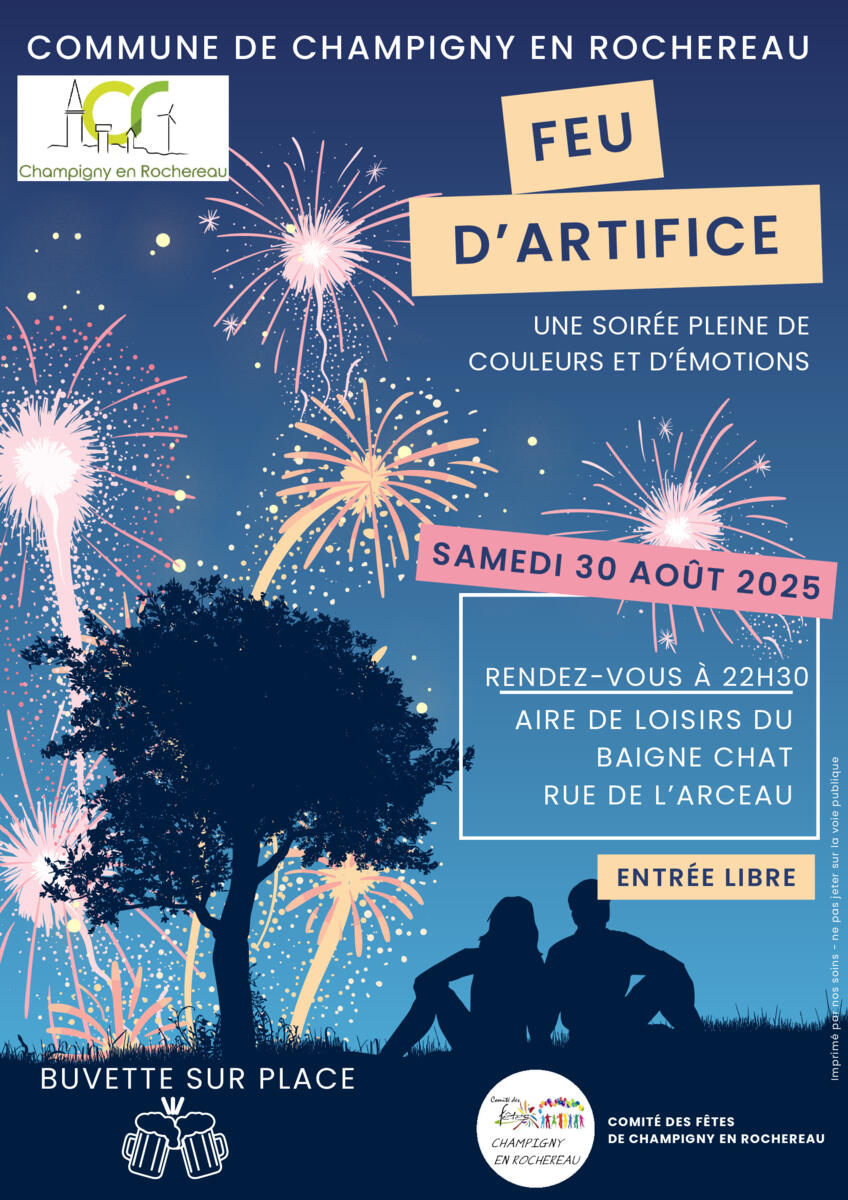 Le feu d'artifice initialement prévu lors de notre Festi'Champ aura lieu le Samedi 30 Août 22h30.