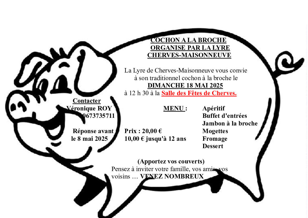 Votre mairie / Actualités / Cochon à la broche dimanche 18 mai 2025 à CHERVES