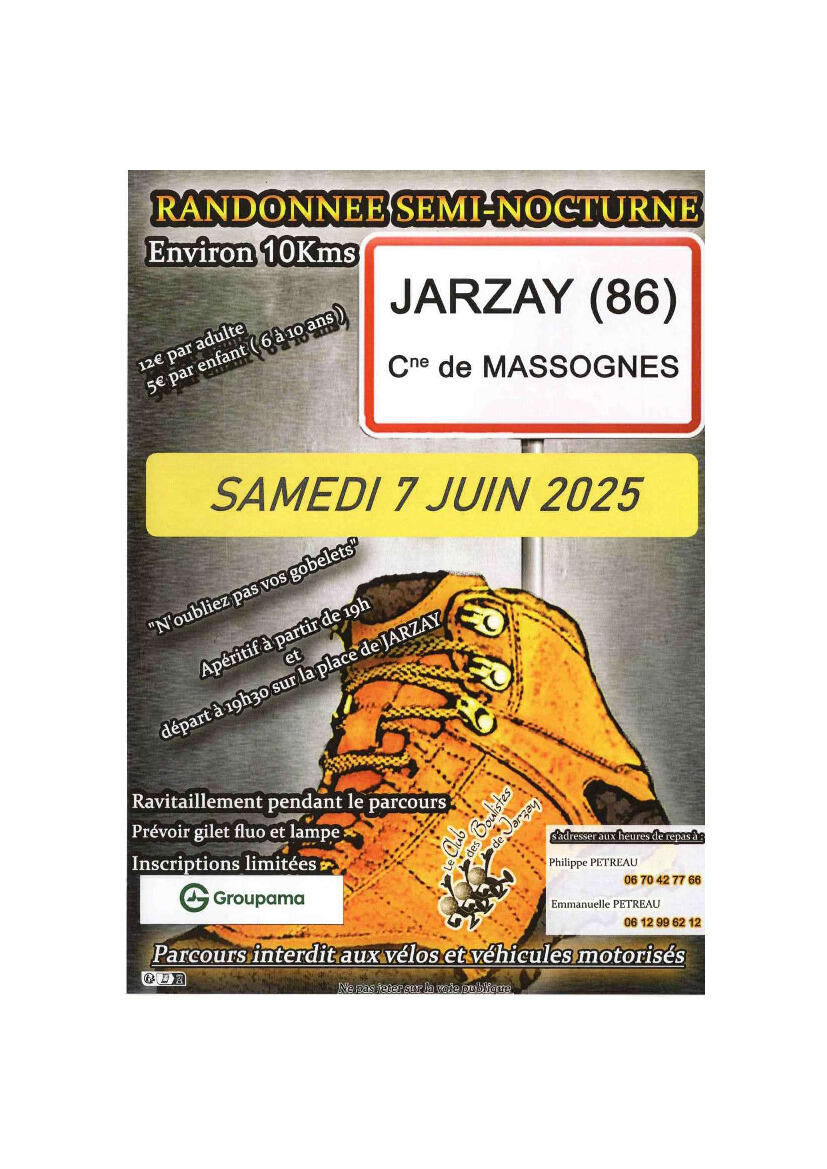 Votre mairie / Actualités / Randonnée semi nocturne à Jarzay (86)