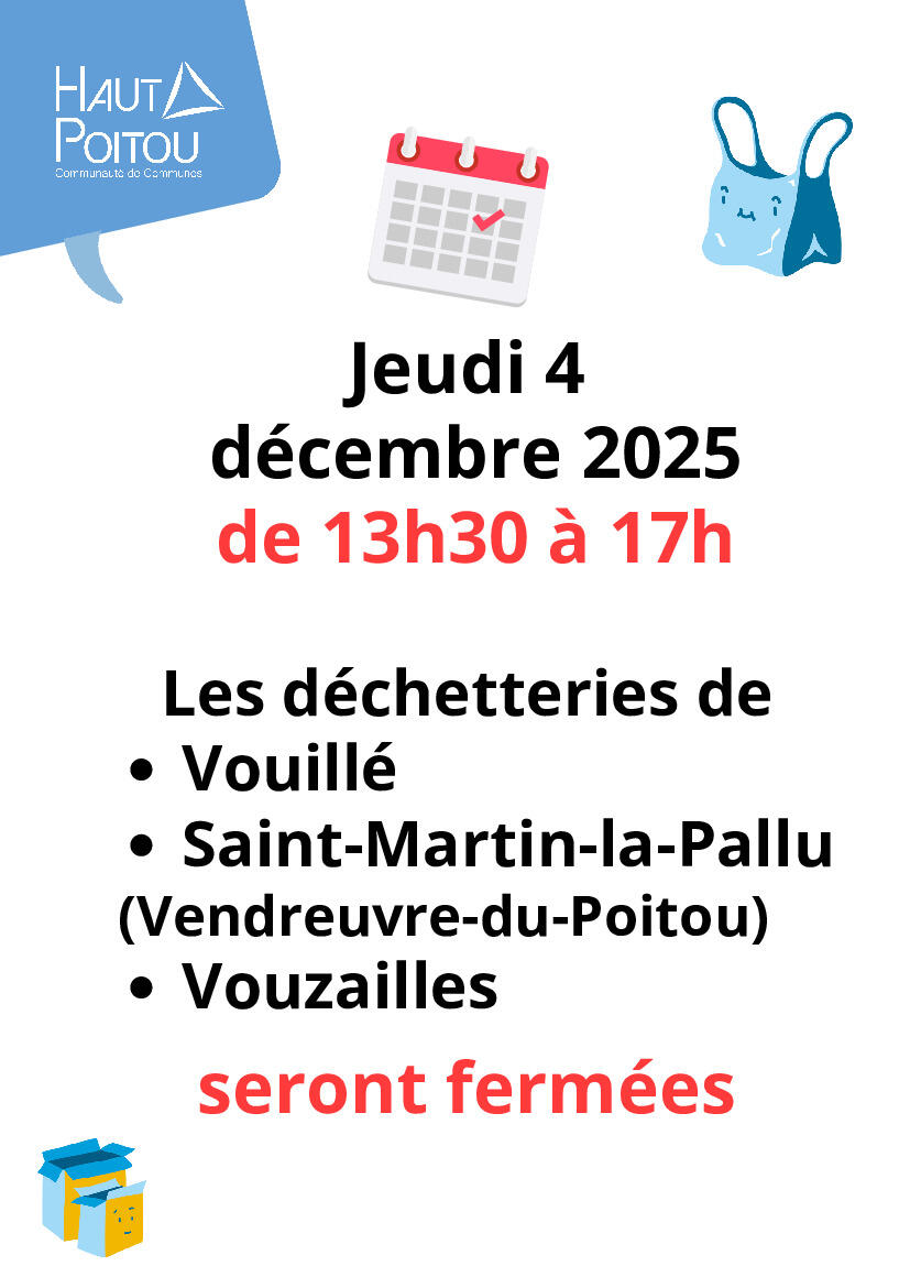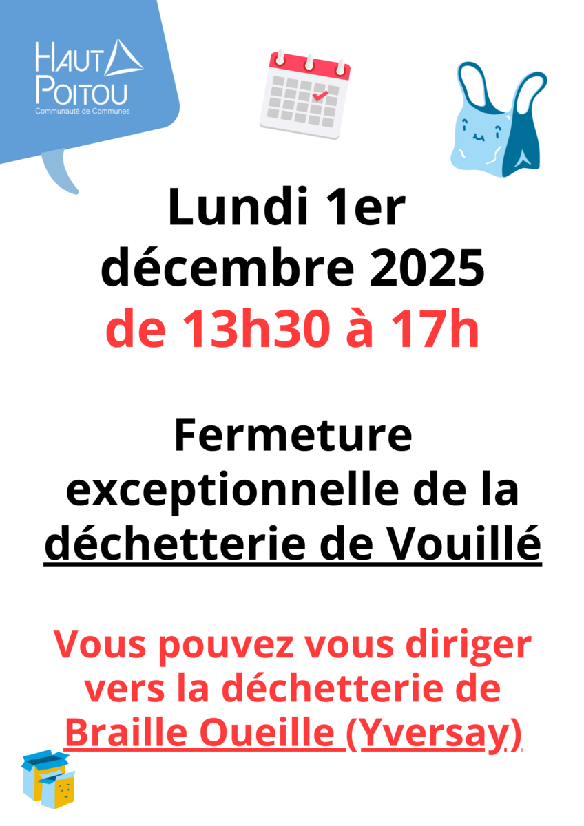 DÉCHETTERIE DE VOUILLÉ - FERMETURE EXCEPTIONNELLE